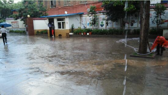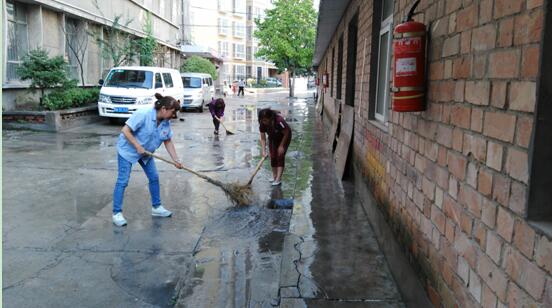 时左右突降暴雨,我司院内因地势低洼,水流不畅。面对险情,高荣经理靠前指挥,冒雨巡查,和大家一起清理积水,确保了厂区安全无险情。