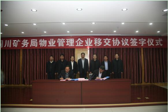 ,铜川矿务局物业管理移交协议签字仪式在铜川矿务局举行。该协议的签订标志着铜川矿务局“三供一业”分离移交工作迈出了坚实一步,取得了阶段性成果。