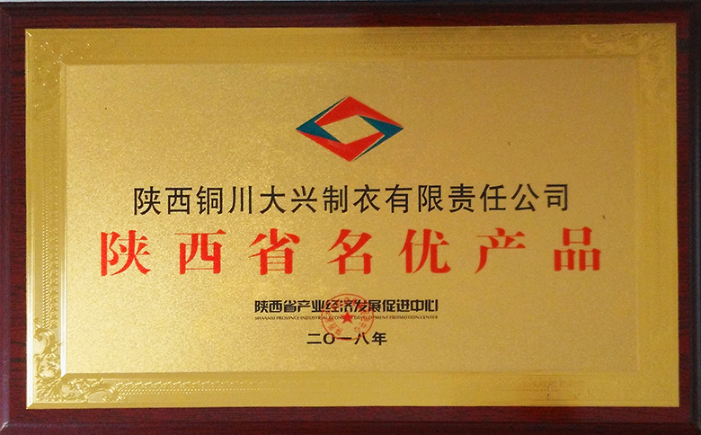 标题:大兴制衣公司产品荣获“陕西省名优产品”称号, 正文: