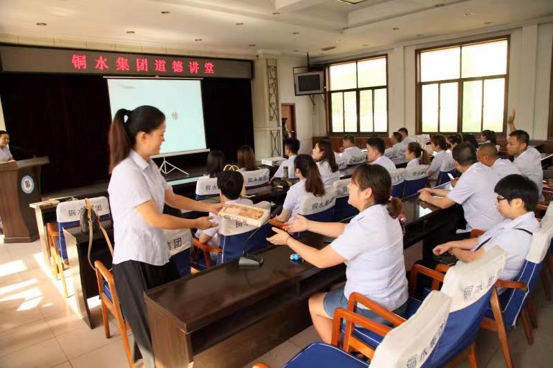 聆听道德故事,沐浴道德洗礼。为积极培育和践行社会主义核心价值观,倡导集团公司广大干部职工树立家庭文明新风尚,传递文明家风正能量,弘扬传统美德,8月16日下午,铜水集团举办了以“家风家训”为主题的道德讲堂活动,集团公司党委副书记、总经理李矿森、机关全体干部和基层职工代表参加了活动。