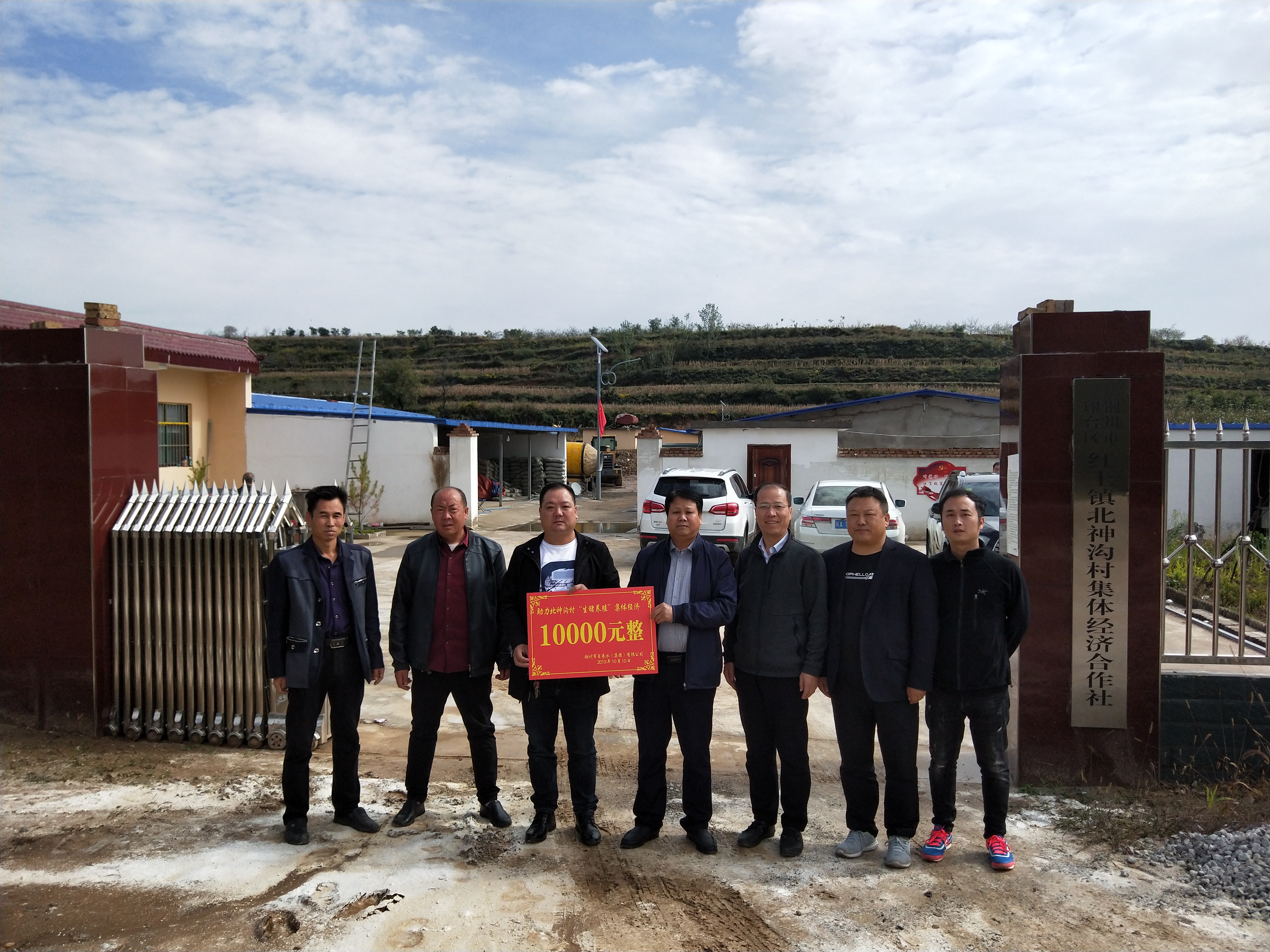 根据国务院办公厅印发的《关于稳定生猪生产促进转型升级的意见》有关精神,结合正在开展的第二批“不忘初心、牢记使命”主题教育,10月10日上午铜川市自来水(集团)有限公司党委书记、董事长纪占华一行四人前往红土镇北神沟村,为村办集体经济百顺养殖农民专业合作社送去人民币壹万元整,助力脱贫攻坚工作。
