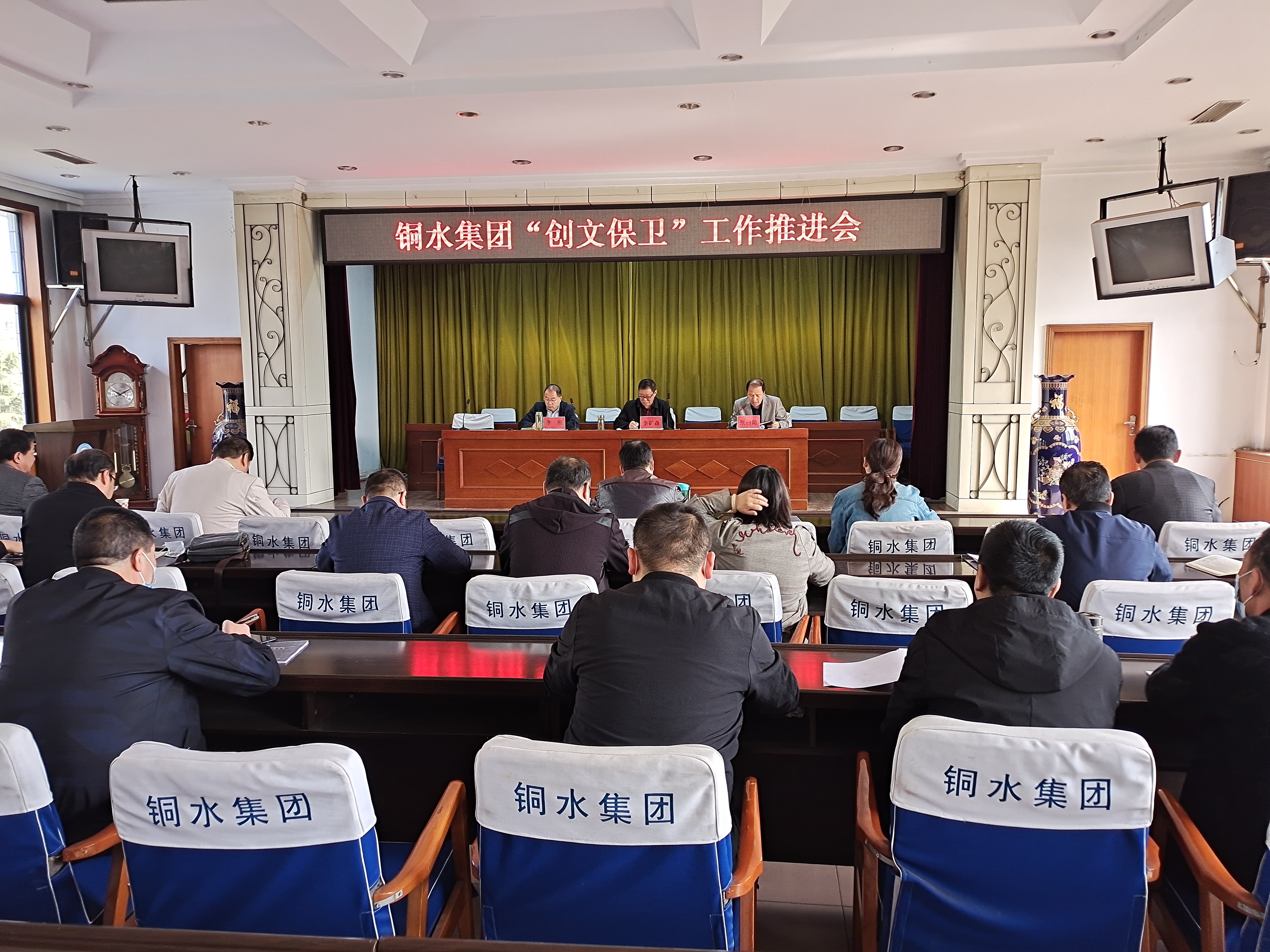 4月22日上午,铜水集团召开2020年创建全国文明城市暨国家卫生城市复审工作推进会。铜水集团党委委员、副总经理张白勋主持会议,领导班子成员,各部部长、各基层厂(公司)厂长(经理)、各党支部书记,工会、团委等部门负责同志参加。