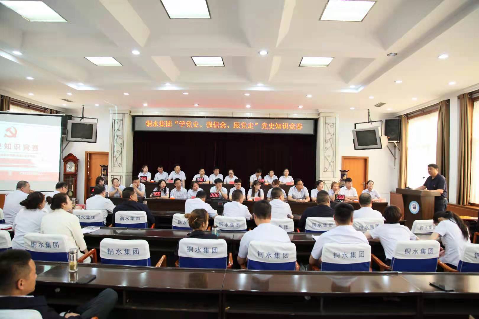 为推动集团公司党史学习教育走深、走实、走心,铜水集团党委精心筹划、统一安排,创新性的通过党史知识竞赛的形式,在全公司掀起学党史、强信念,热爱党、热爱祖国、热爱供水事业的热潮。5月25日上午,铜水集团 “学党史、强信念、跟党走”党史知识竞赛在六楼会议室开赛,集团公司党委副书记、刘少峰参加并致辞。领导班子成员、各党支部书记和部分党员代表参加活动。
