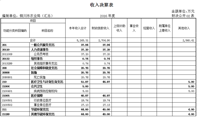 2、收入决算表