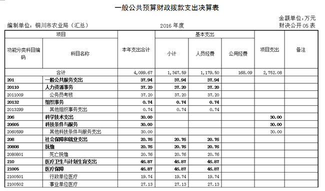 2016年一般公共预算财政拨款支出4099.67万元(含机关及17个基层二级单位),按支出功能分类科目分,包括:
