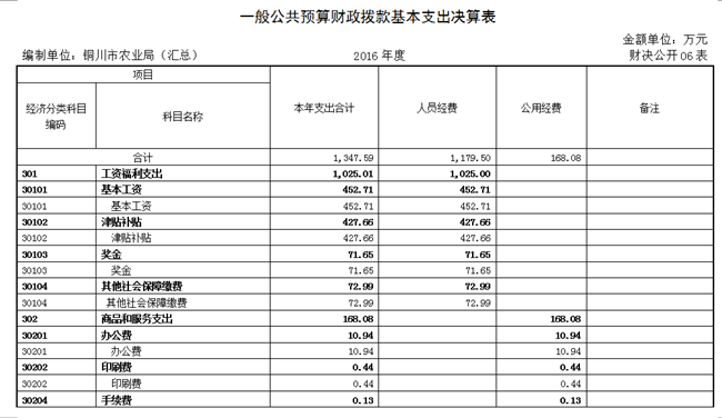 2016年度一般公共预算财政拨款基本支出1347.59万元,用于保障局机关及局属17个基层单位的正常运转和日常工作需要,其中: