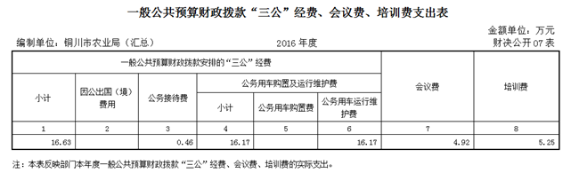 2016年度一般公共预算财政拨款安排的“三公经费”支出16.63万元(市局及17家基层单位合计支出),其中, 因公出国(境)费用支出0万元,公务用车购置及运行维护费支出16.17万元(为公务用车运行维护费16.17万元),公务接待费支出0.46万元。