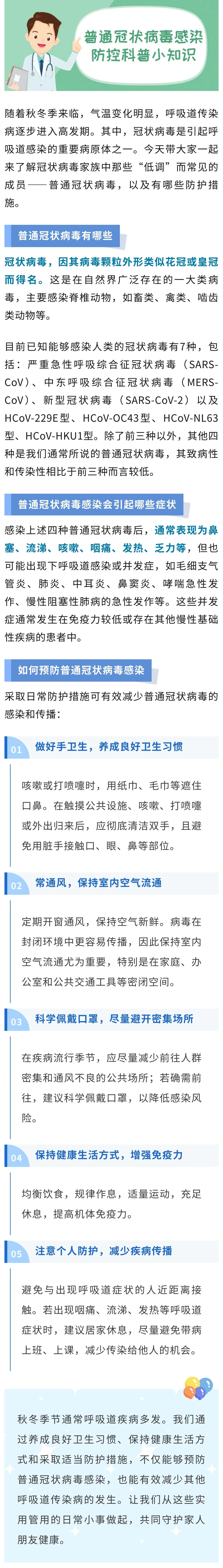 标题:普通冠状病毒感染防控科普小知识, 正文: